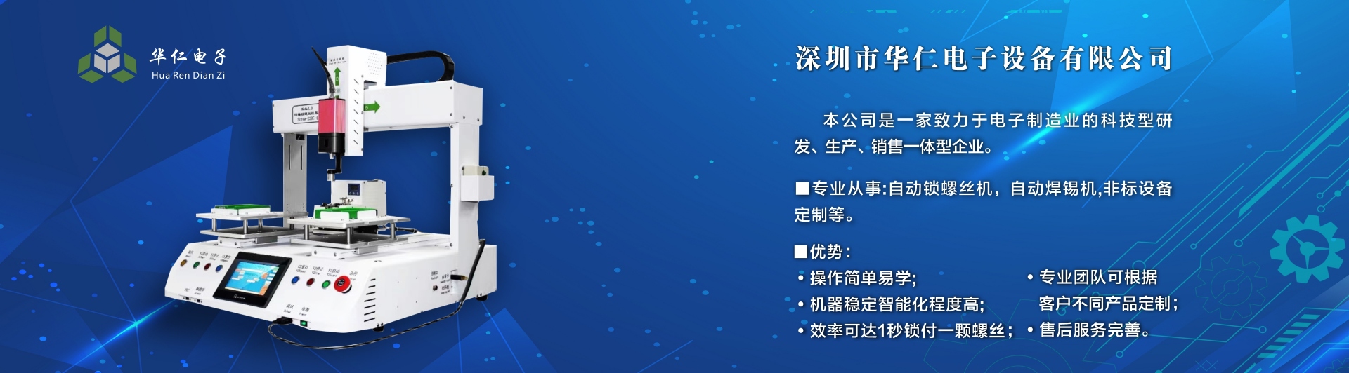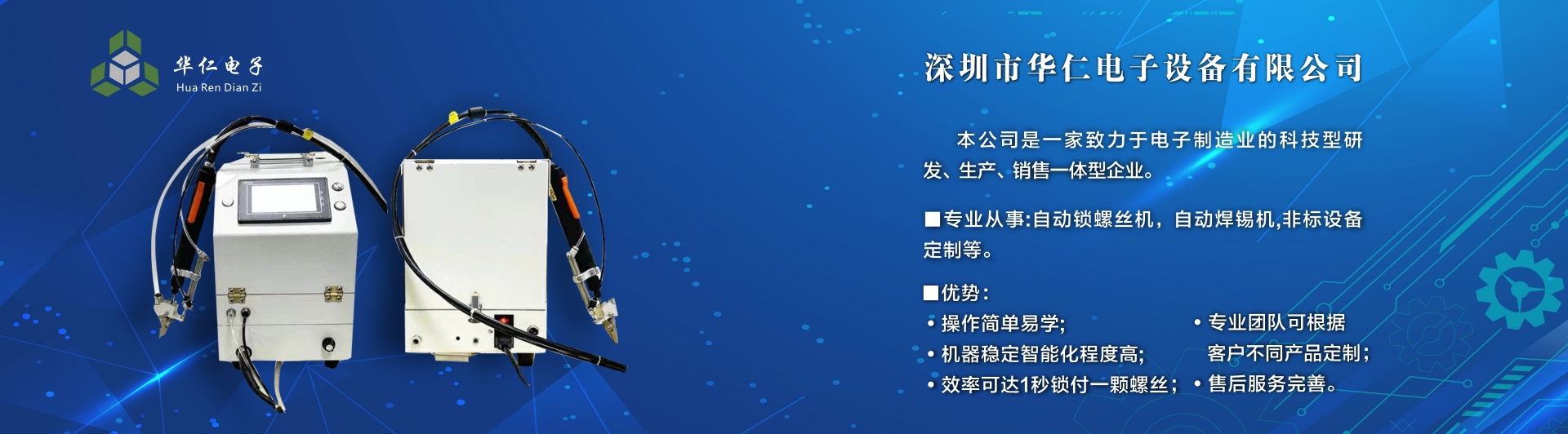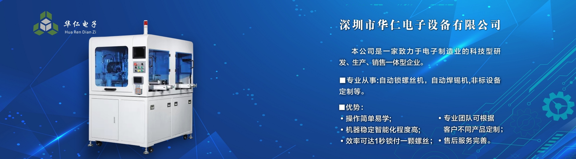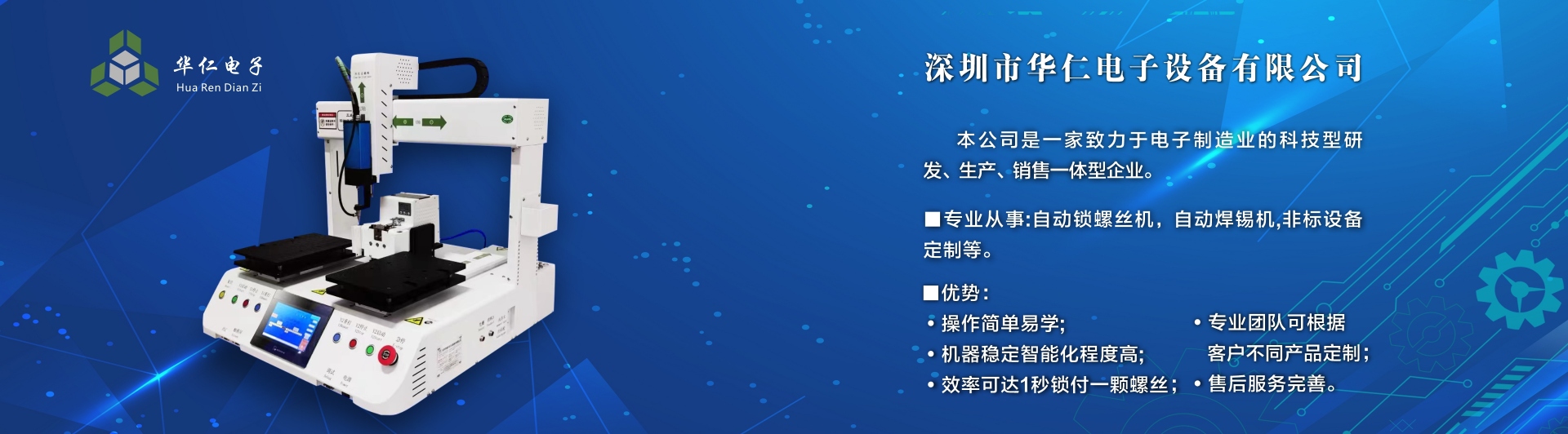 深圳市華仁電子設(shè)備有限公司是一家致力于電子制造業(yè)周邊設(shè)備的科技型研發(fā)、生產(chǎn)、銷售一體的企業(yè),專業(yè)從事:自動(dòng)鎖螺絲機(jī);自動(dòng)焊錫機(jī);非標(biāo)設(shè)備定制機(jī)等,公司長(zhǎng)期以來(lái)在行業(yè)中積累了豐富的經(jīng)驗(yàn),擁有專業(yè)的研發(fā)、技術(shù)、銷售支持工程團(tuán)隊(duì)、各高級(jí)技術(shù)人才為客戶提供優(yōu)質(zhì)產(chǎn)品和服務(wù),同時(shí)不斷吸取國(guó)內(nèi)外先進(jìn)技術(shù),更準(zhǔn)確及時(shí)地為客戶提供優(yōu)質(zhì),性價(jià)比高的產(chǎn)品、公司以專業(yè)的售前、售中、售后服務(wù)贏得了客戶的信賴和好評(píng),為客戶提供先進(jìn)自動(dòng)化設(shè)備一體式解決方案、